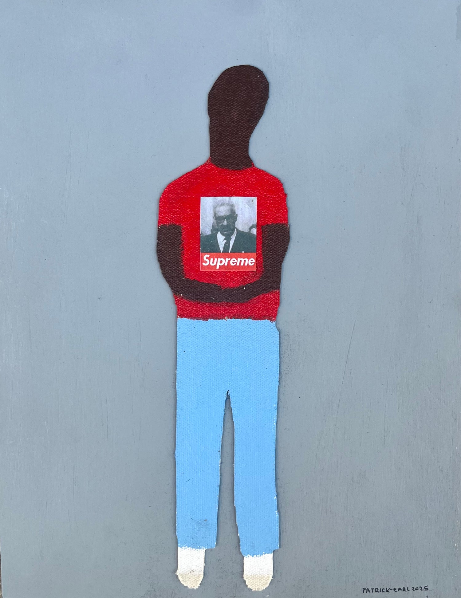 The ink cut-out figure drawings are enhanced with fabric, crayons, colored pencils,...