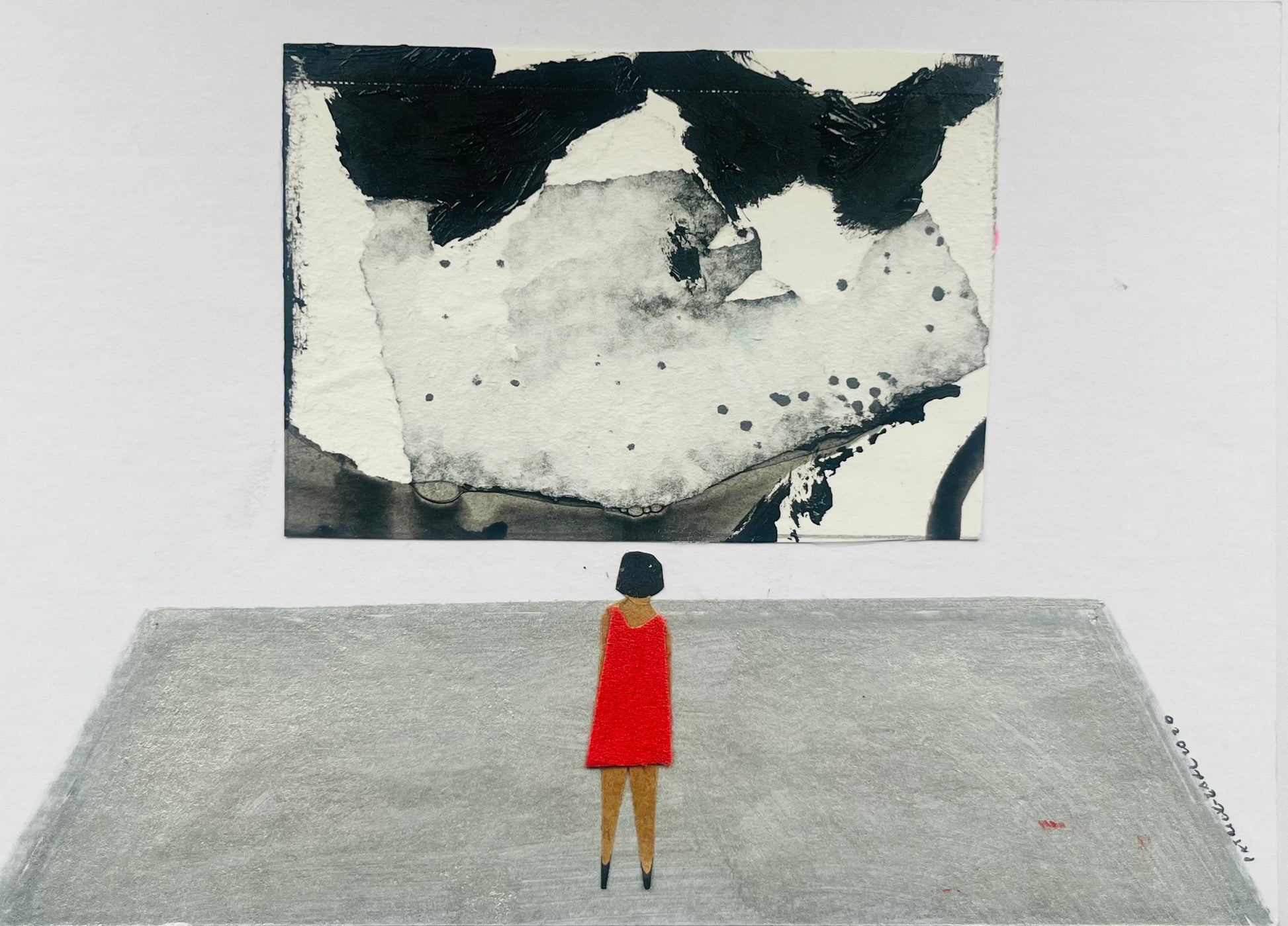 Acrylic and fabric/paper collage on museum board 5x7 inches