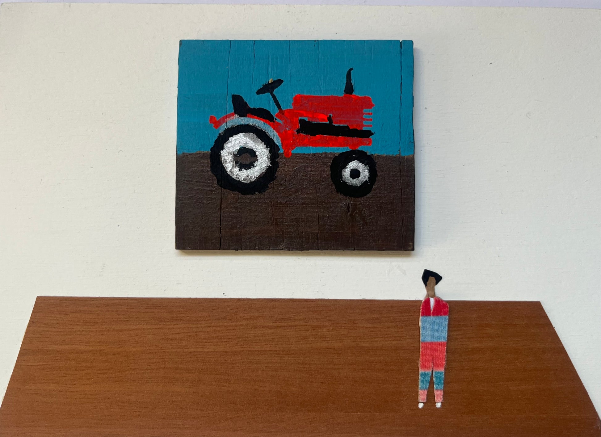 Acrylic and fabric/paper collage on wood 5x7 inches framed