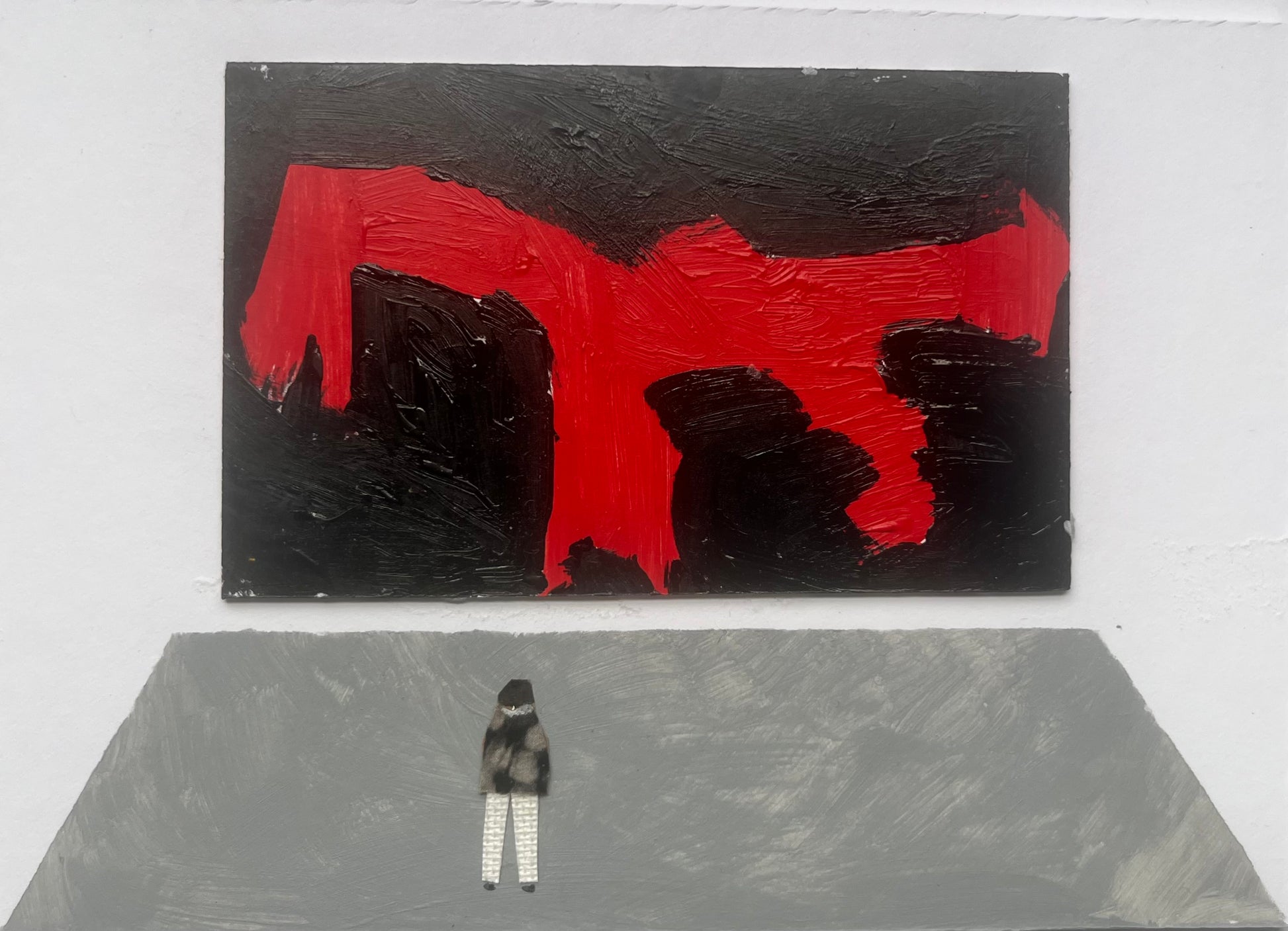Acrylic and fabric/paper collage on museum board 5x7 inches