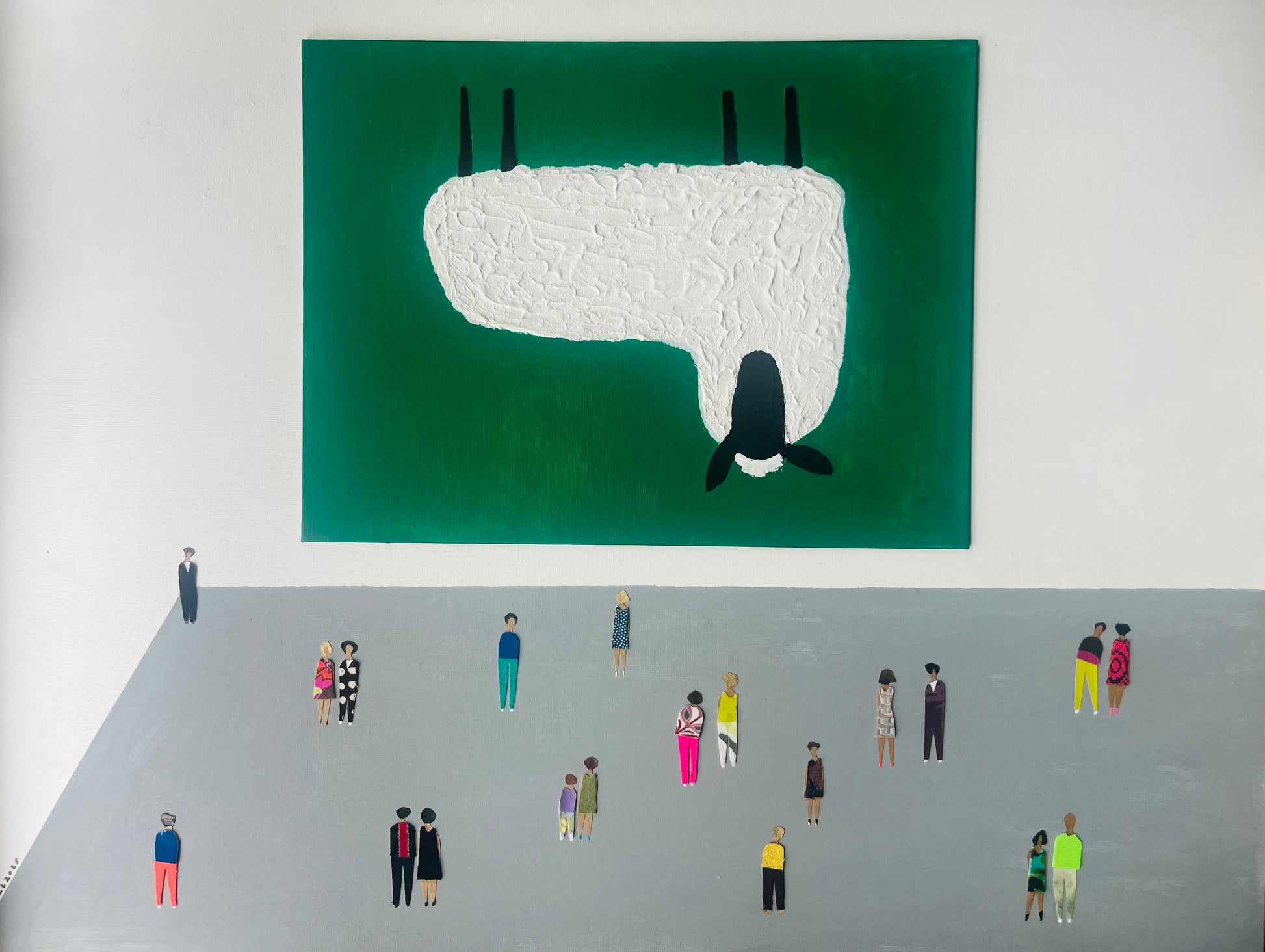 Medium: Acrylic and fabric/paper collage on wooden panel on canvas board 20x24 inches