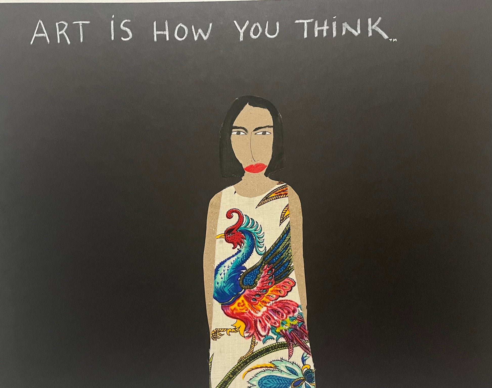 Oil pastel, fabric collage, ink cut-out drawings decoupage on black museum board 15x20 inches