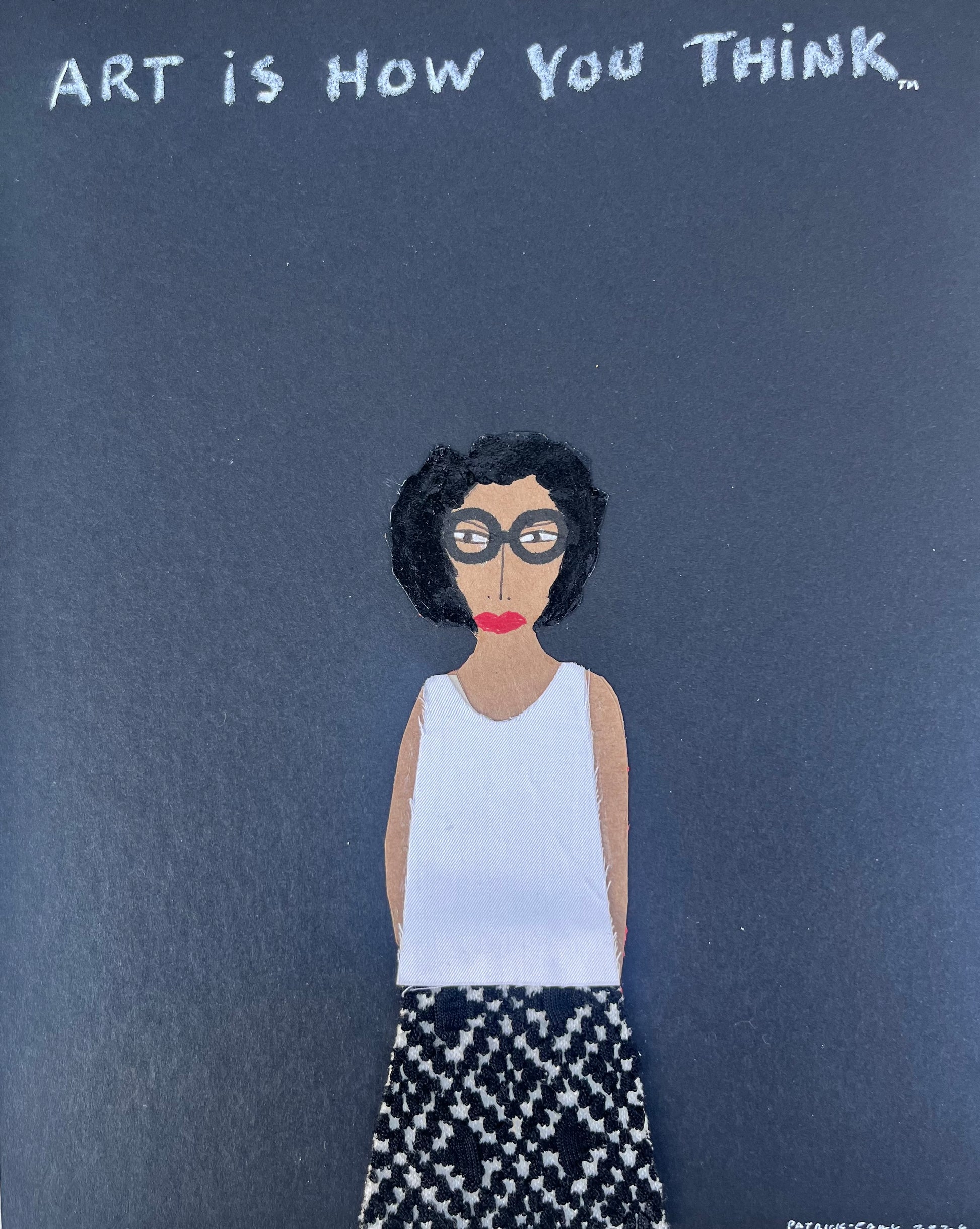 Acrylic and fabric collage, ink cut-out drawings decoupage on museum board 8x10 inches