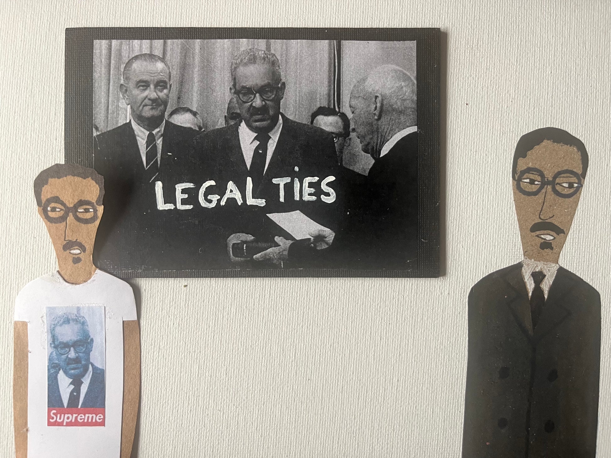 This exclusive "Deep Folk" drop honors Justice Thurgood Marshall, the first Black Supreme Court Justice, who won 29 of 32 Supreme Court cases before taking his seat on the bench. The design, derived from my original work, features a paper collage that merges Supreme's box logo with powerful archival images chronicling Marshall's journey from civil rights lawyer to Supreme Court Justice.
