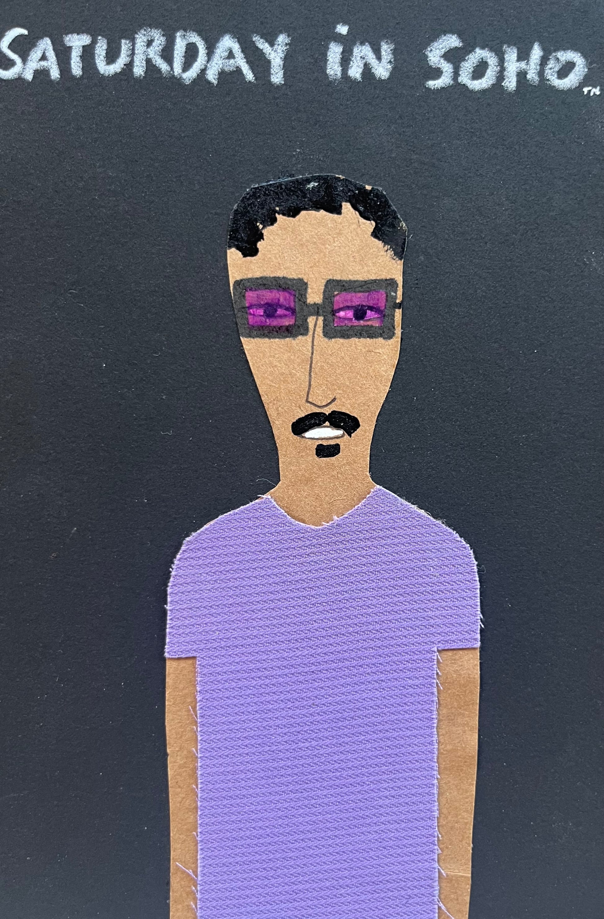 Oil pastel, paper/fabric collage, ink cut-out drawings decoupage on black museum board 5x7 inches